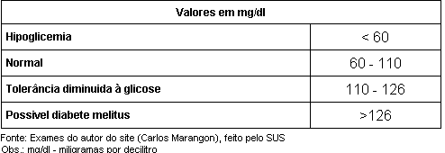 Fonte: exames do autor do site (Carlos Marangon), feitos em jejum de 12 horas